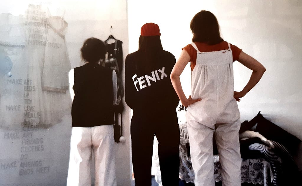 FENIX arose from Kate Walker, Su Richardson, Monica Ross and Suzy Varty’s experience of working together during Feministo | Postal Art Event. FENIX was an on site piece using collage, performance and installation. An event built progressively in the galleries. Galleries were used as a studio space, open to the public throughout the whole process.